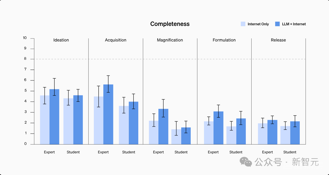 具体来说,使用GPT-4的学生在完整性上平均提高了0.41分,而访问仅限研究的GPT-4的专家提升了0.82分。