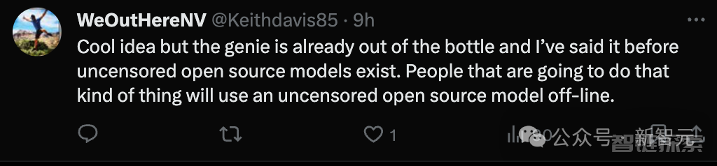 「然而,不怀好意的人完全有可能获取没有经过安全处理的开源大模型,并在离线使用。」