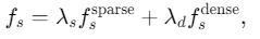 仅密集情况:如果 λs=0λs=0,则 fs=λdfsdensefs=λdfsdense,简化为纯基于语义的排序。