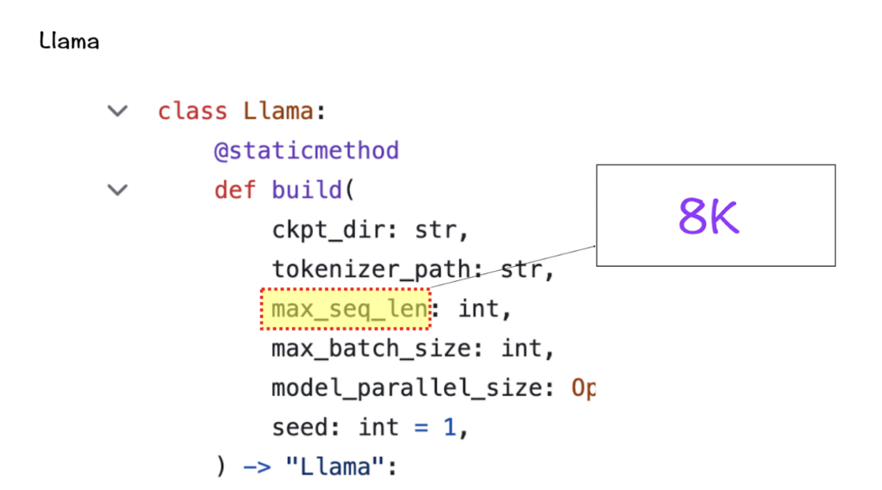 在实例化LlaMa类时,变量max_seq_len用于定义上下文窗口。当然,这个类中还包含其他一些参数,但是这一个参数符合我们关于转换器模型的目的。这里的max_seq_len是8K,这意味着注意力头能够一次扫描8K个标记。