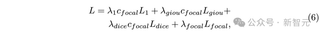 上述公式中,各种损失函数(如L1损失、GIoU损失、Focal损失和Dice损失)被结合用于驱动模型的训练过程,使得模型在执行回归和分割任务时获得强化的反馈。
