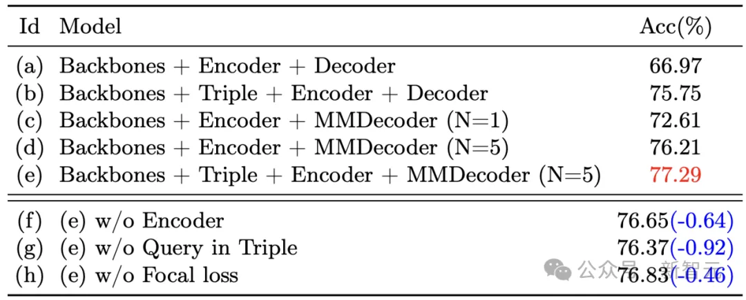 进一步分析通过控制变量法对各个模块的有效性进行消融研究。研究显示,加入Triple Alignment模块后,可以有效消除查询、文本及视觉特征之间的领域差异,进而促进后续的目标定位。